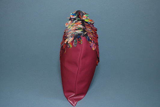 Multi-Color Sequin/Burgundy Faux Leather Throw Pillow